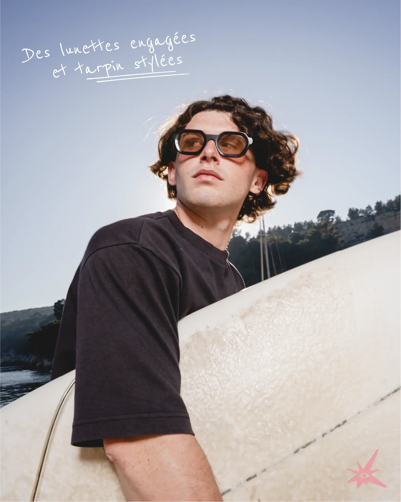 Sandro réutilise les déchets plastique qui ont envahi Marseille et ses calanques pour créer des lunettes de soleil tarpin stylées. Et parce qu’appliquer des valeurs écologiques devrait être la norm, on a dit non aux clichés visuels des marques écolos toutes vertes, pour mettre l’accent sur le vrai message de Cyel : On peut être stylé tout en étant engagé !