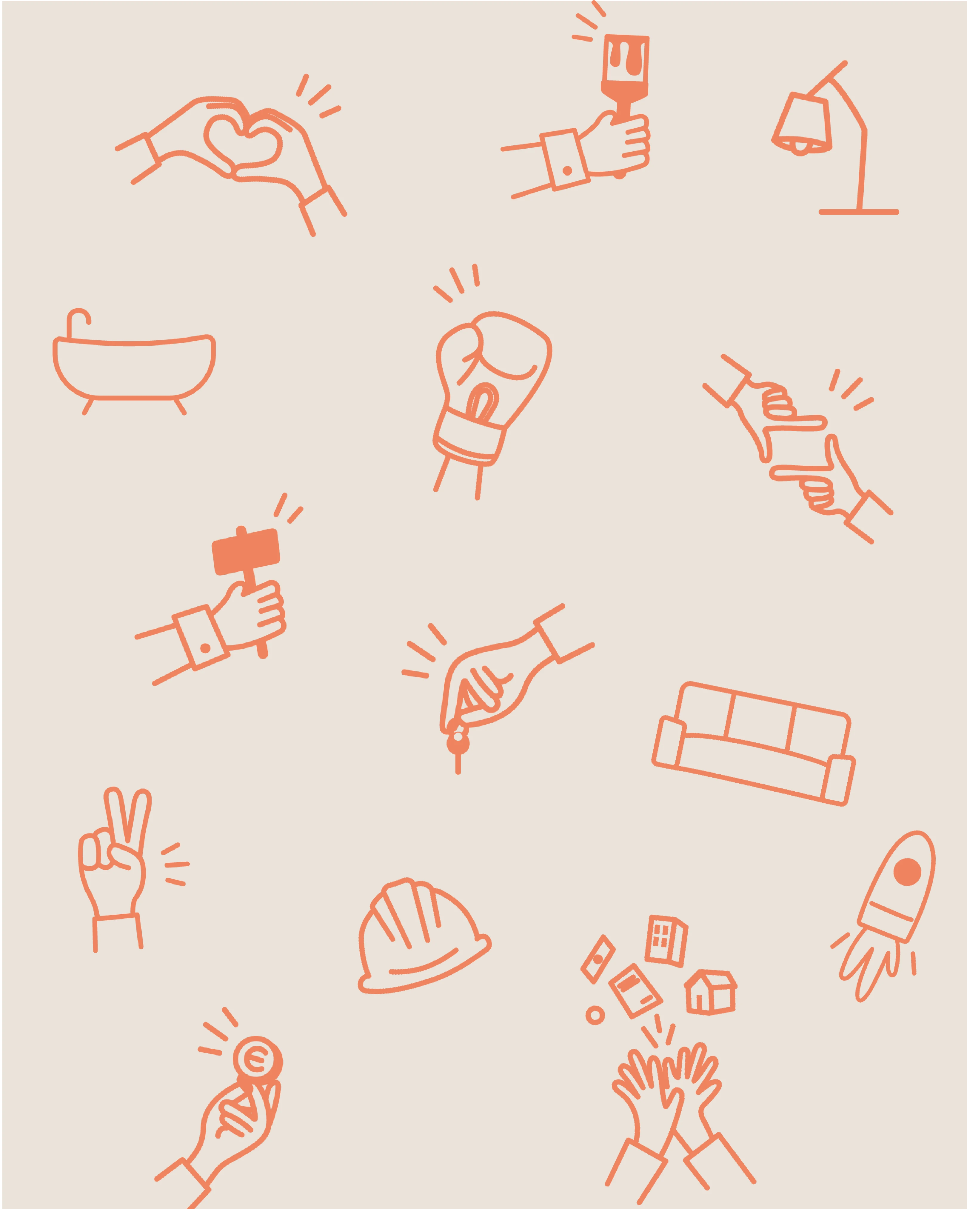 Nous avons opté pour une identité visuelle à la base épurée pour souligner la qualité du service et des travaux effectués avec des couleurs neutres et des polices d'écriture serif. Puis nous avons ajouté une nuance d'orange pour donner plus de vie à leur marque, ainsi que des détails dessinés à la main pour plus de personnalisation et insister sur le côté humain qui leur est cher.